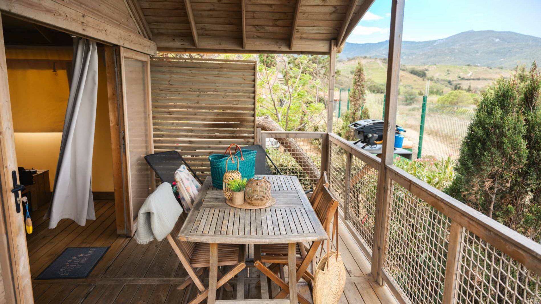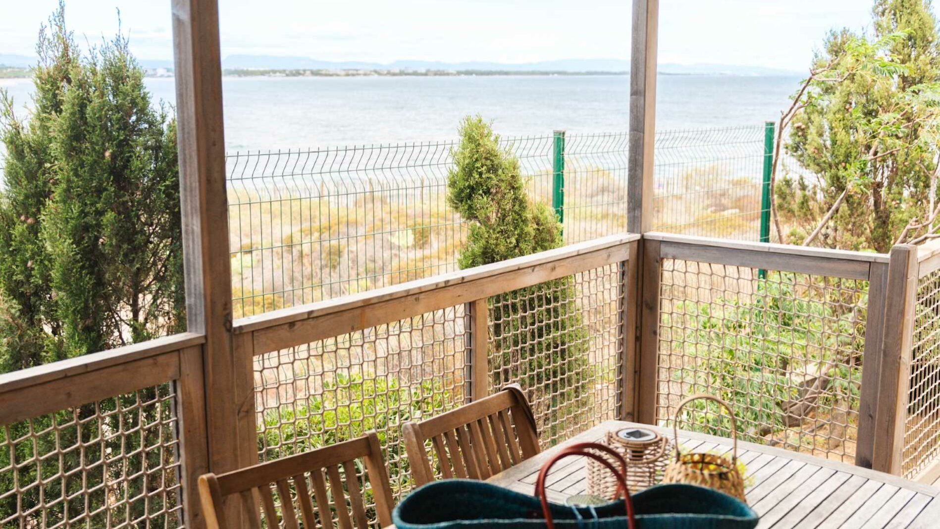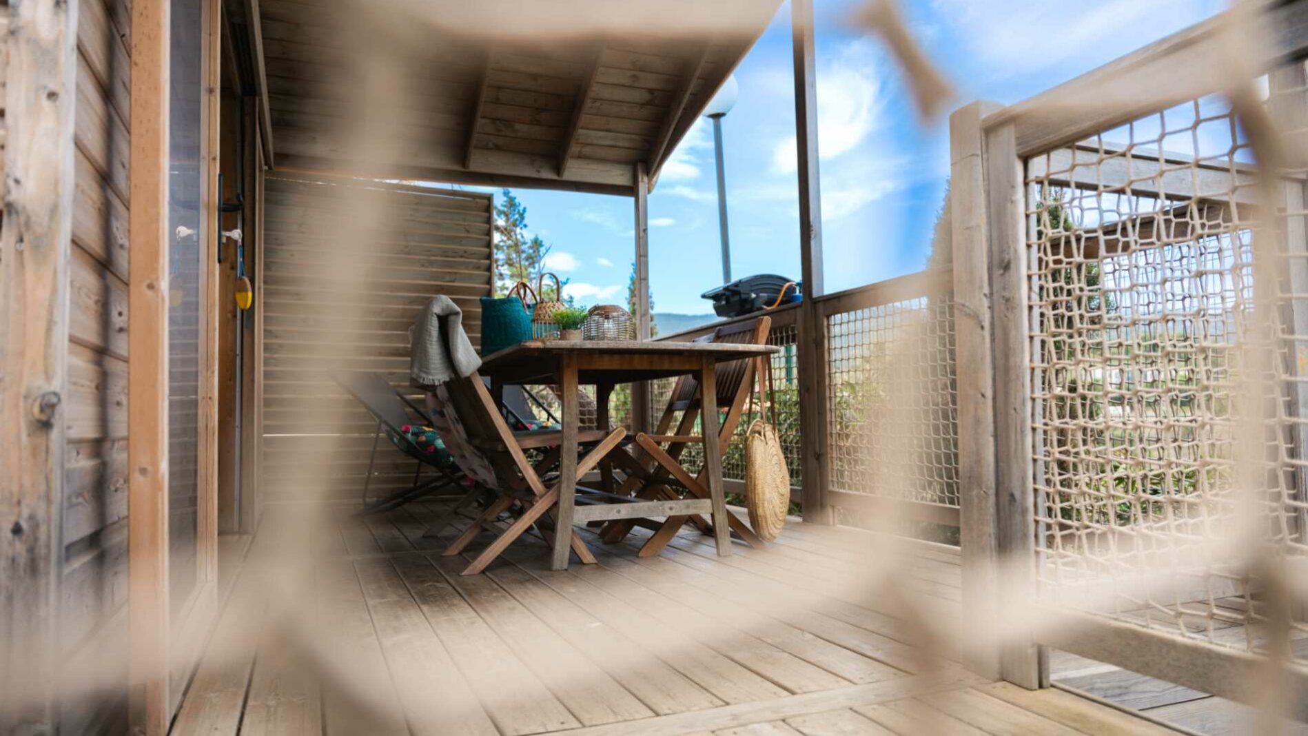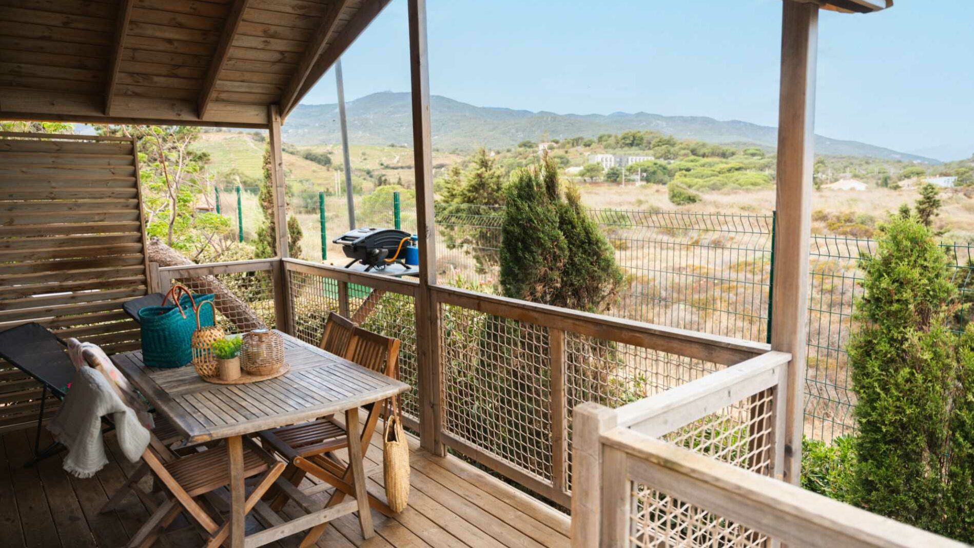 24m² + 10 m² Overdekt terras. een slaapkamer met 1 tweepersoonsbed (140×190), een slaapkamer met 2 eenpersoonsbedden (80×190), een zithoek met slaapbank voor 2 personen (140×190). Compleet ingerichte keuken. Houten tuinset.
