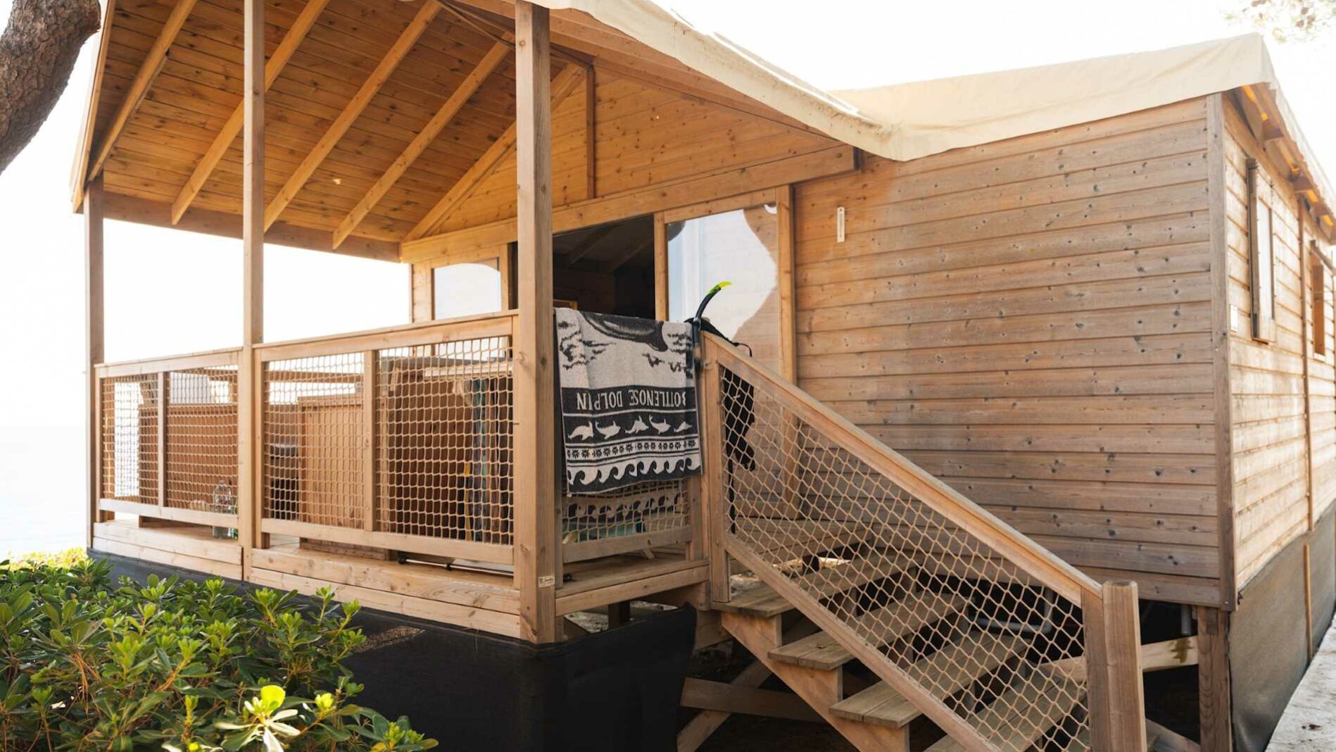 27 m² + 10 m² Overdekt terras, een slaapkamer met 1 tweepersoonsbed (140×190), een slaapkamer met twee 1-persoonsbedden (80×190), 1 slaapbank voor 2 personen (140×190). Compleet ingerichte keuken. Een badkamer met wasbak, douche en WC. Houten tuinset.